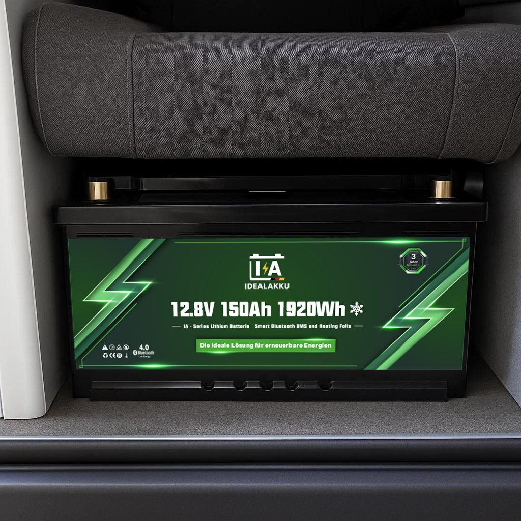Idealakku IA SERIE Lithium Batterie LiFePO4 12V 150Ah Smart BMS mit Bluetooth Wohnmobil Untersitzbatterie mit Heizung