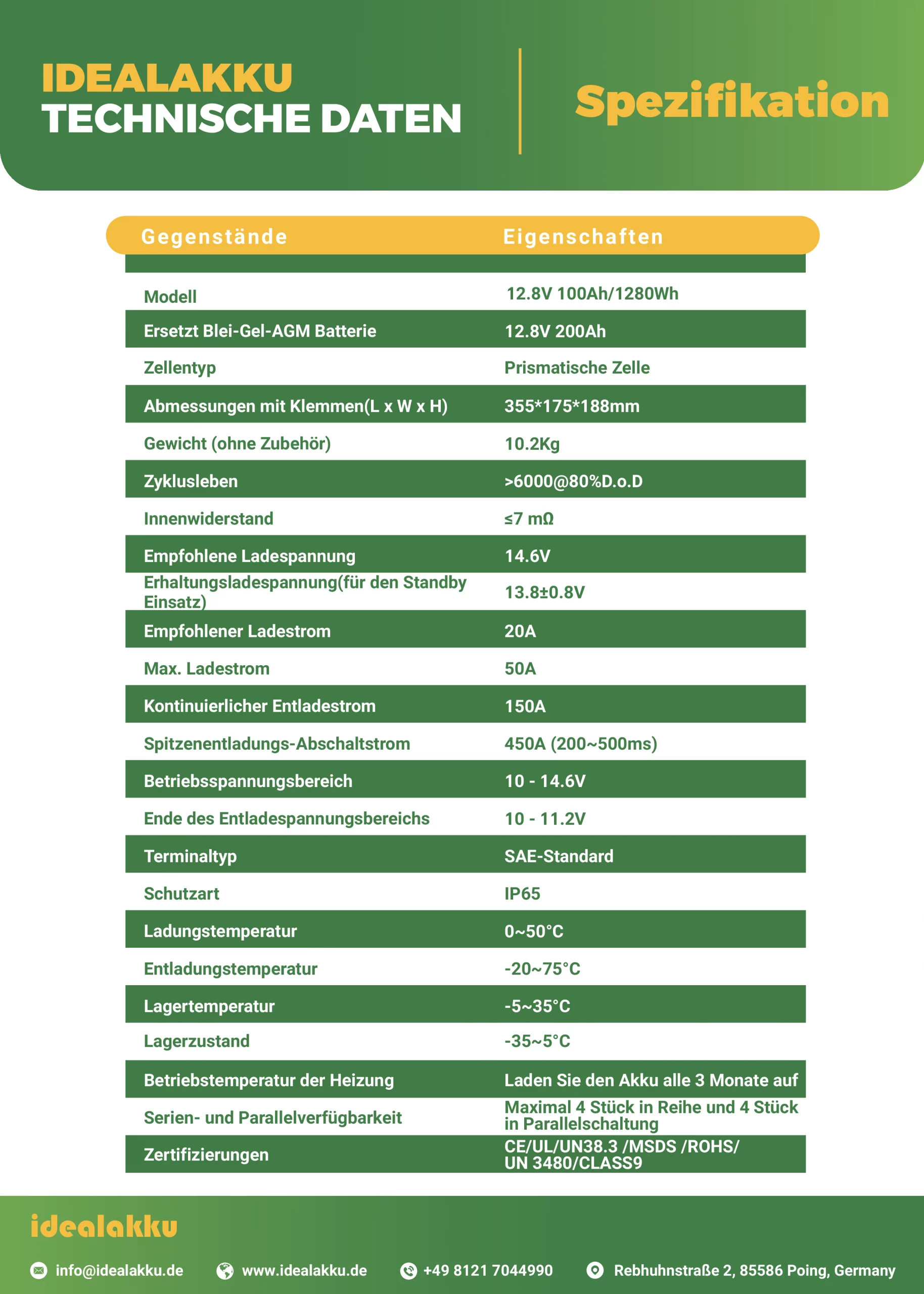 Ersetzt Blei-Gel-AGM Batterie | 12.8V 200Ah |
